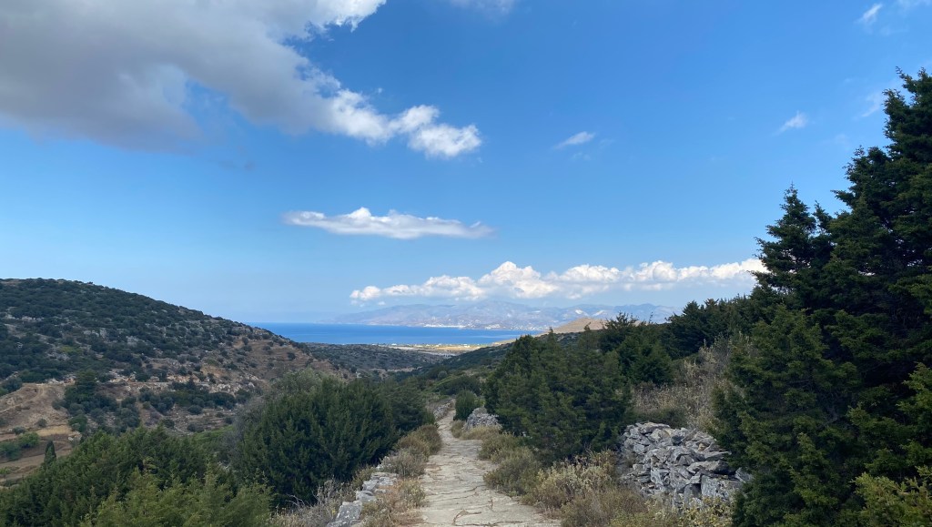 Naxos and Paros are only a few miles apart so, geologically, not dissimilar. The main difference was the size – Naxos being about three times the area of Paros – and the height of its peaks , which are about 1,000 feet higher than any on Paros, are more abundant. While most of the towns and villages on Paros were within a few hundred metres of the coast, Naxos had mountain villages which set in to the side of the larger peaks and, some of which, seemed like the had been untouched in half a century.