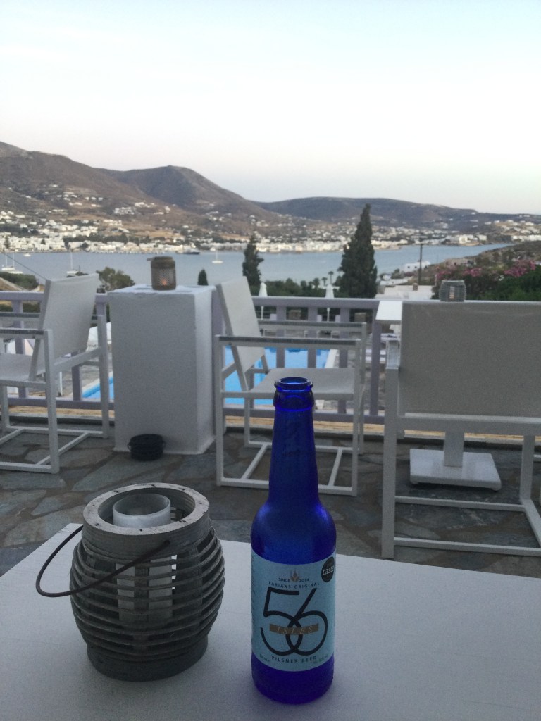 Straight away it was much cooler and there was a welcome breeze which countered the stifling heat of Athens. Whilst there seemed to be a good number of fellow travellers disembarking the ferry in Paros, everyone soon dispersed or was collected by porters from their respective hotels and it was only then it dawned on us how few tourists there actually were. We checked in to our hotel, the Akrotiri Hotel, which overlooks Parikia from the peninsula across the bay, and we were one of two couples checking in (to a 20 or so room hotel) . There was one other couple by the pool. Having spent the previous four weeks in London and Athens we both felt relieved to be somewhere much quieter, in that we had made it to the Greek islands, but there was also a strange feeling of seclusion in during our initial strolls around Parikia as it began to become quite apparent that without the usual throng of Brits this was going to be a much quieter Greek island-hopping experience than we initially thought it might.