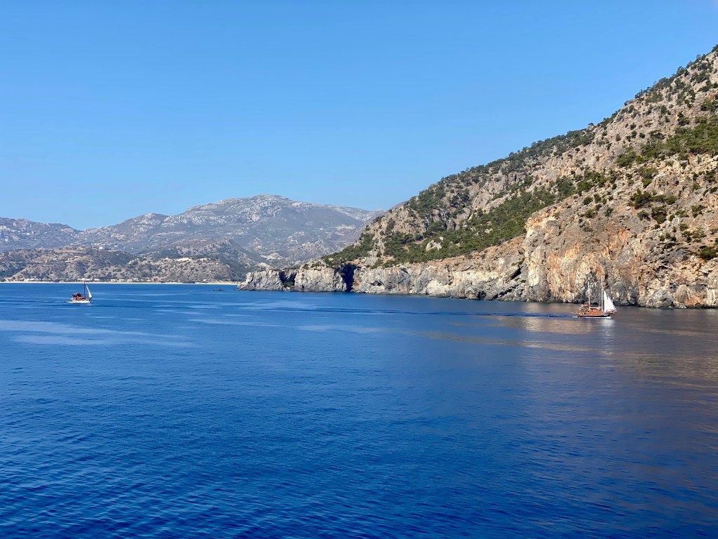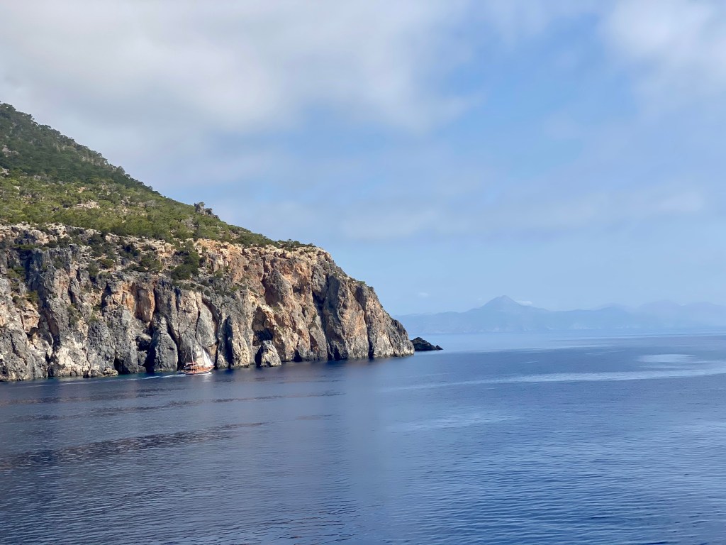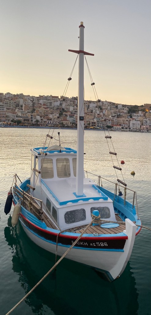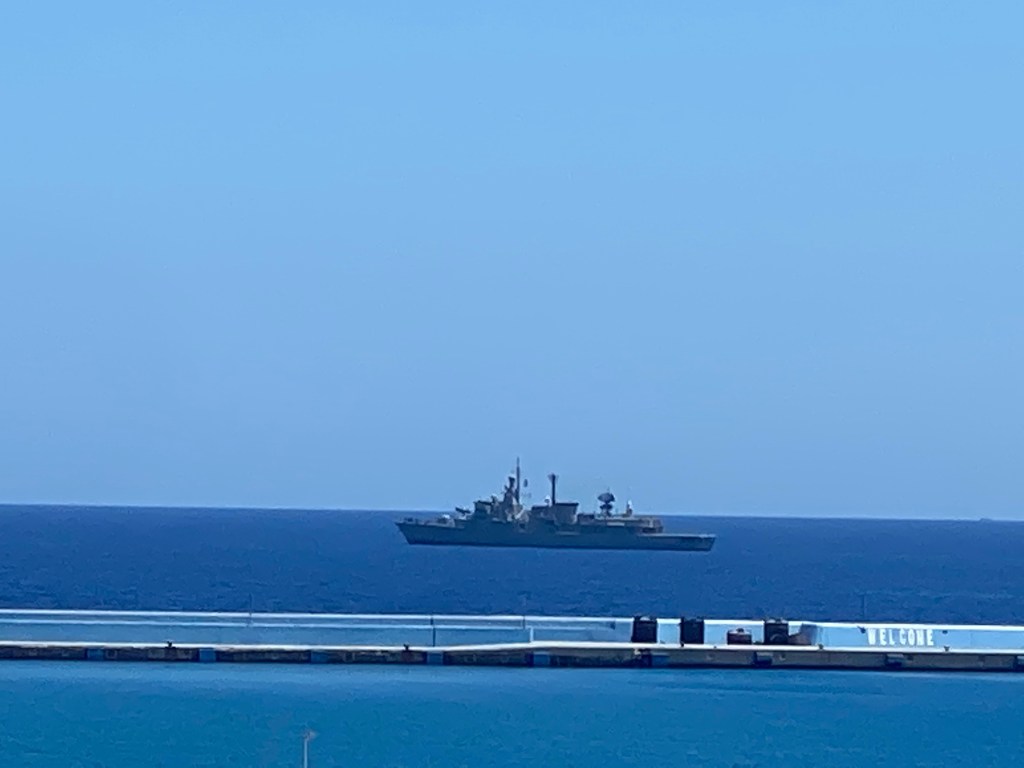 The welcome to Crete was an interesting one: as we sailed around the headland in to Sitia, a huge frigate sat in the middle of the bay. We wondered whether it was a Greek vessel or if this was the latest chapter in the ever more draconian measures HM Government were employing to stop people holidaying in countries with a far lower Covid count than that of the UK. Fortunately for us, it turned out to be the former and we docked without any real hassle.