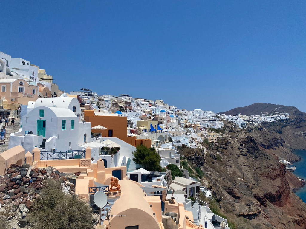 It is difficult to write anything that hasn’t already been written about Santorini as it is probably Greece’s best known and most visited island, so I’ll keep this relatively brief. Arriving by ferry for the first time – our previous visits have been individual holidays during which we had flown in – provided an interesting new perspective of Santorini from the water and enabled us to look up at Fira and Oia from inside the caldera of the now extinct volcano. It looked larger, more grand and, to an extent, provided an insight in to how Messrs Branson, Bezos and Musk might want to the moon to look in a few decades’ time – with the notable exception of the surrounding sea.