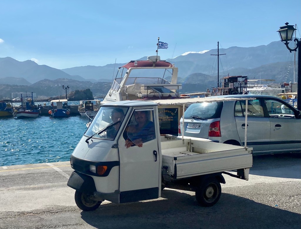 We had a couple of days in Sitia to find our feet before moving on to Chania. Sitia was quite a small port town with a lovely beach adjacent to the port with the usual bars and restaurants along the promenade – and the frigate which remained in the middle of the bay for the duration of our stay. The drive to Chania was our longest yet in Greece, c. 200 miles, and aside from the quite dramatic landscape of Crete – valleys, gorges and mountains – was most memorable because of the lunch we had at a remote taverna on the south coast (we decided to take the scenic route rather than the motorway which joins the main northern cities) which was ambushed by some local sheep farmers who were insistent we joined them for salted chopped cucumber and raki – we adjudged they had finished work for the day by the amount of raki they were sloshing back. Given we were only a third of the way in to the five-hour drive, and had only had a light breakfast, this was something of a baptism of fire for our guts and also meant my usual beer with lunch had to be abandoned – my superego took over – so the next hour of the journey was spent with burning chests which was pretty unrelaxing given, for the first time, we had a geared car – not automatic – on the most mountainous island we were to visit.