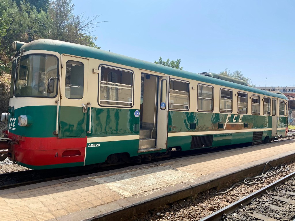 The streets of Catania look dirty, primarily because they lie in the shadow of Etna, Europe’s most active volcano (80 eruptions measured during the 20th century), and so the pavements are strewn with volcanic dust which, unavoidably, makes them look a little dirty. But it is only superficial. We found Catania to be a really quite pleasant place, rich culturally, historically (it has a 2nd century amphitheatre restored just north of the central square) and architecturally. It also boasts – and this is a little geeky – it has a wonderful single-carriage train, the Ferrovia Circumetnea, which has a terminal in central Catania and, as the name suggests, circumnavigates the base of Etna joining with the main coastal line at Riposto, about two thirds of the way to Taormina.