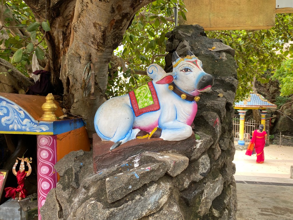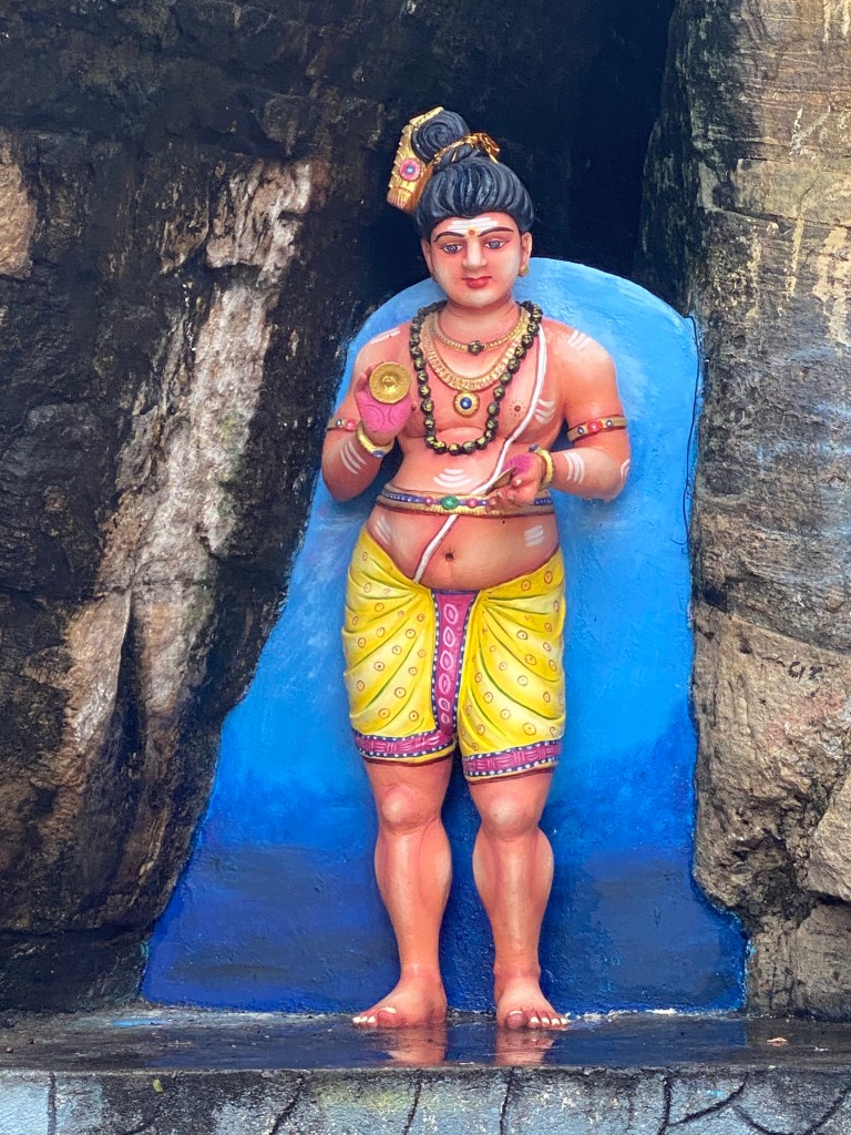 After seeing, and meeting, the army in Fort Frederick, we followed the path up the hill expecting there to be very little of interest; we encountered anything but. At the top of the hill was an abundance of colour. The white-spotted deer had been the highlight until we met an incredible Hindu Temple. Wow.