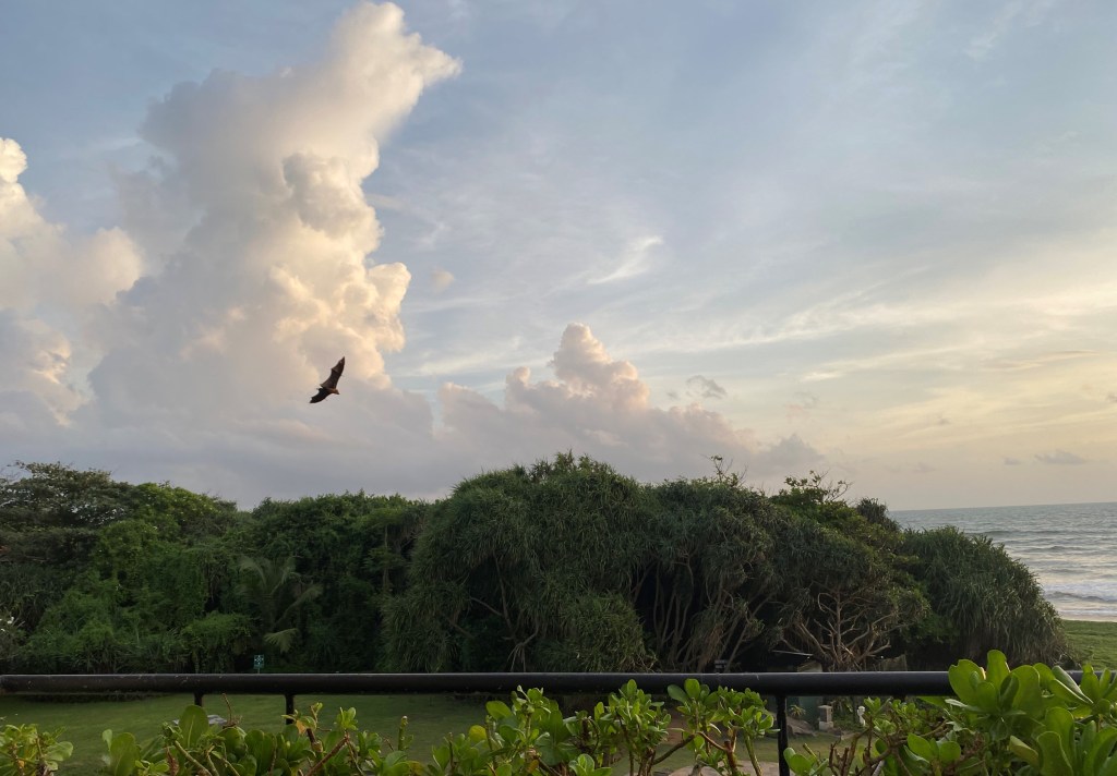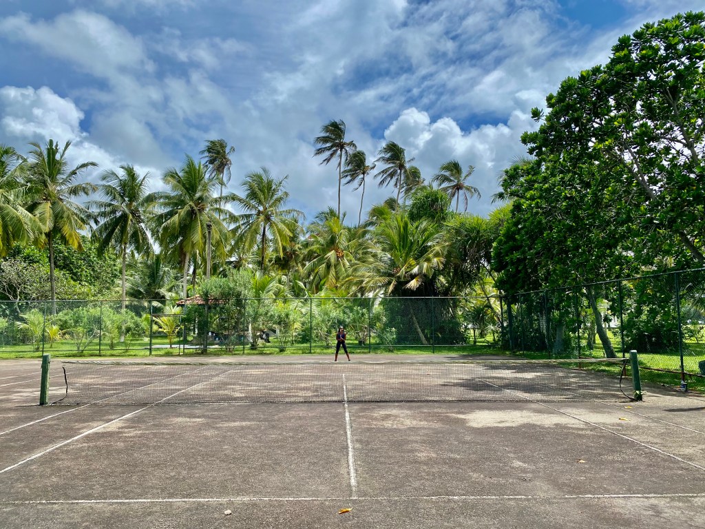 As one might expect, we got in to something of a routine during quarantine. Breakfast, gym, lunch, tennis (the hotel had an excellent coach), movie, sunset walk, supper, evening libation, bed; was how most days went. The tennis was subject to amenable weather which we had for seven of our fifteen days in Bentota. We got a bit spooked when, after having had wonderful sun on the first couple of days, on days three and four we were hit with 24-hour monsoons (winds which bent some of the smaller palm trees to 45 degrees and rain which came down in stair rods). I know we had arrived during the off season, but seriously?